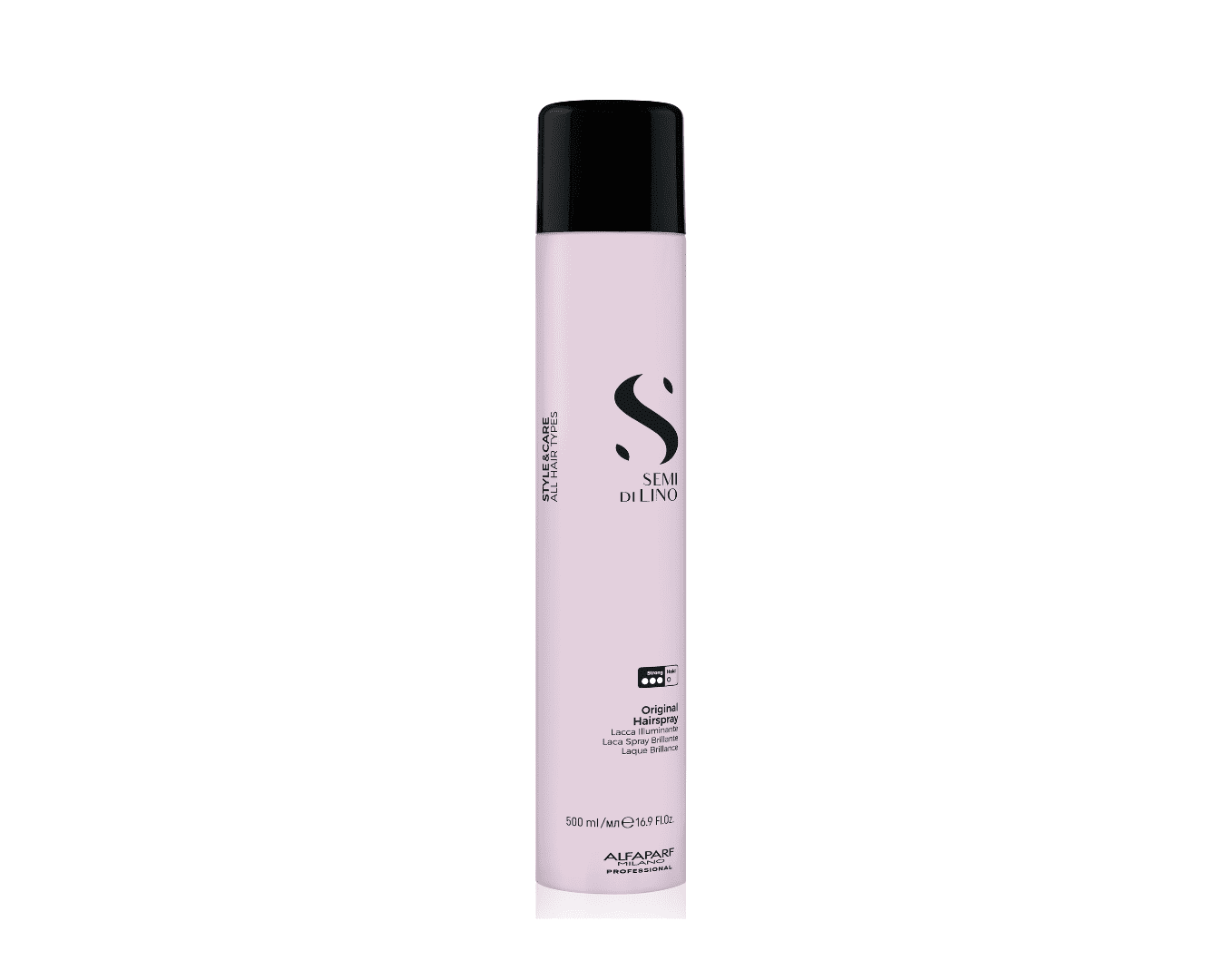 Semi di Lino Original Hairspray es una laca en spray con fijación fuerte que acompaña el movimiento del cabello y aporta brillo, sin apelmazar.