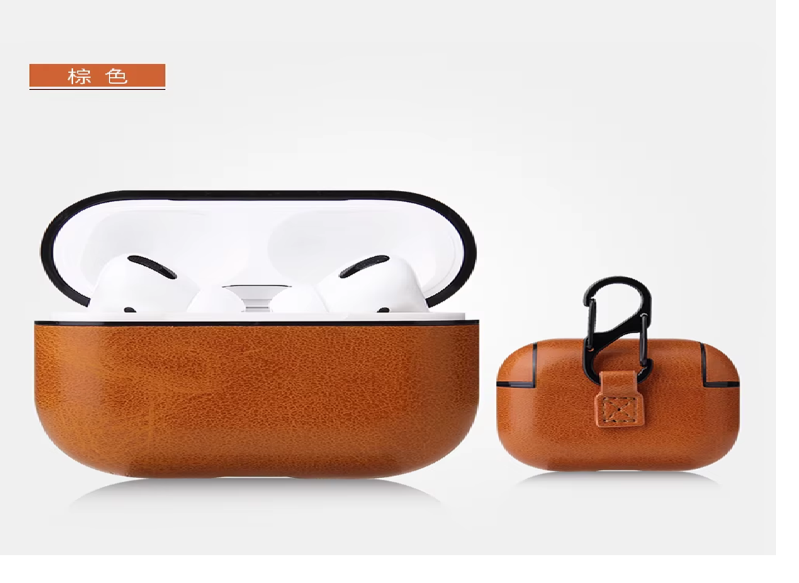 Funda Protectora de Cuero PU para AirPods Pro 3 – Marrón